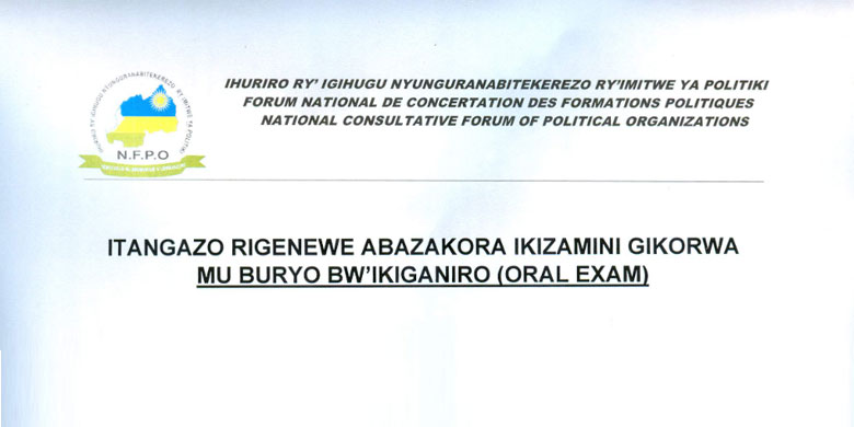 Itangazo Rigenewe Abazakora Ikizamini Gikorwa mu buryo bw'ikiganiro (Oral Exam)
